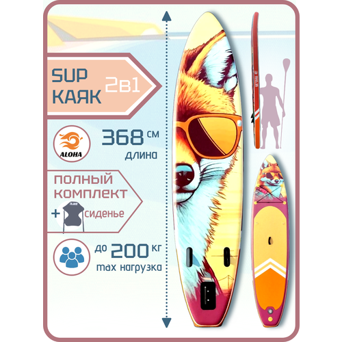 Надувная SUP доска - каяк 2 в 1 ALOHA 12'0 x 33" x 6" с полным комплектом аксессуаров.