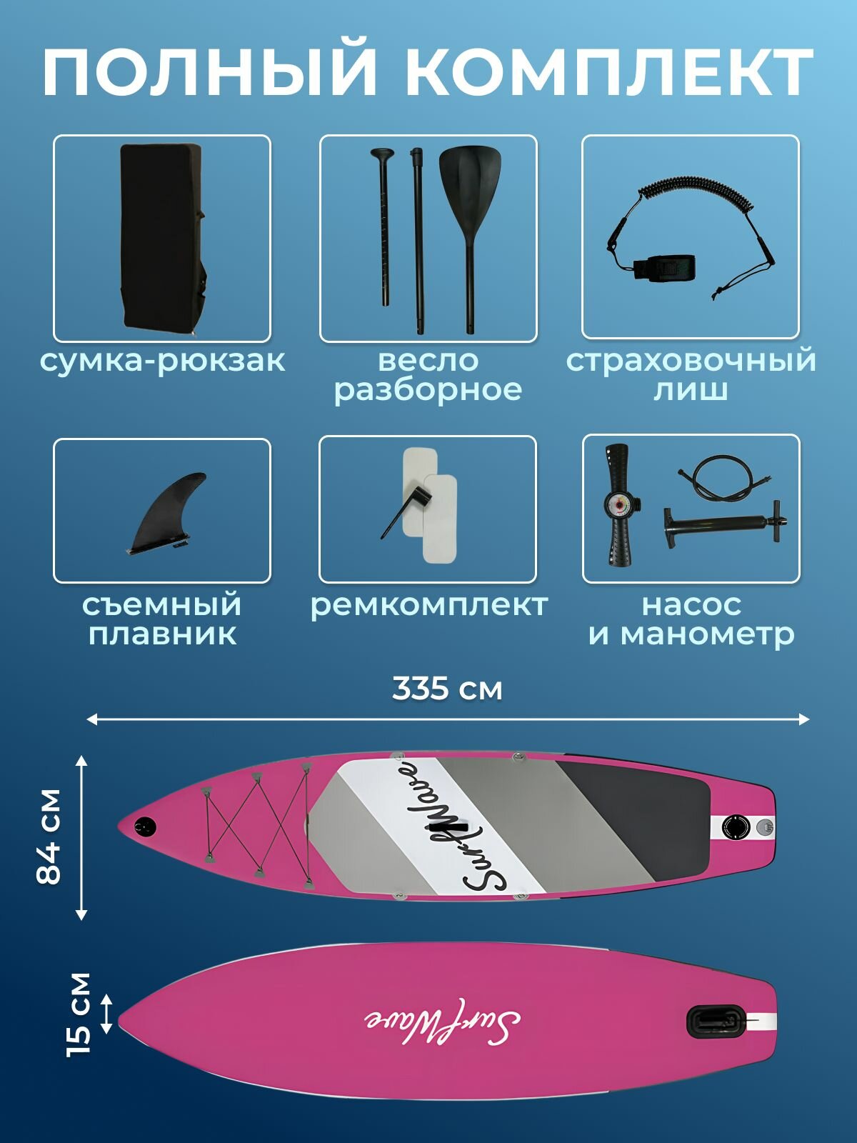 Сапборд, надувная SUP-доска Surf Wave 335х84 см, надувной двухслойный, Волны Серфинга, малиновый, полный комплект: сравнение цен, характеристики, фото, актуальное наличие и цены.