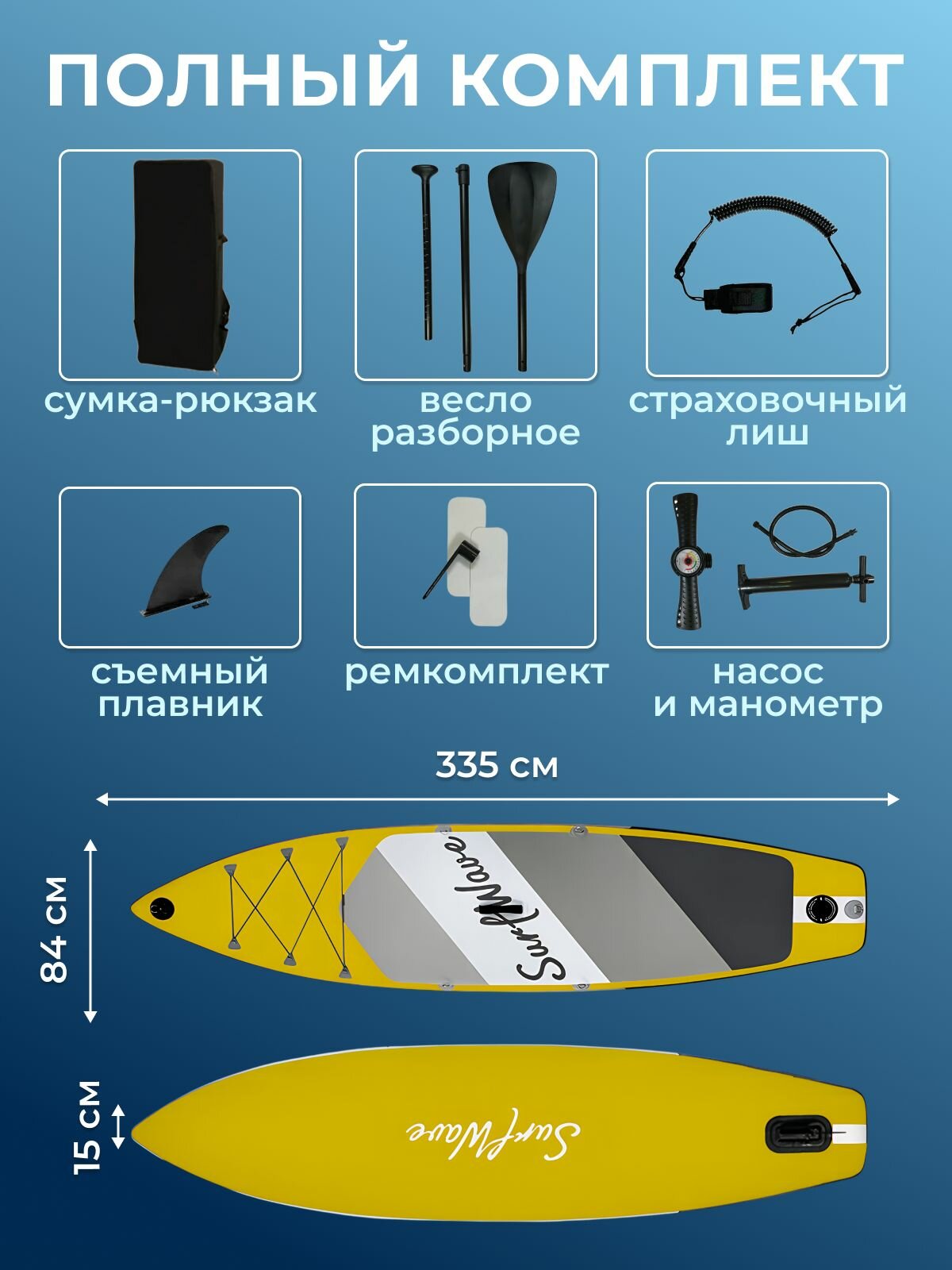 Сапборд, надувная SUP-доска Surf Wave 335х84 см, надувной двухслойный, Волны Серфинга, песочный, полный комплект: сравнение цен, характеристики, фото, актуальное наличие и цены.