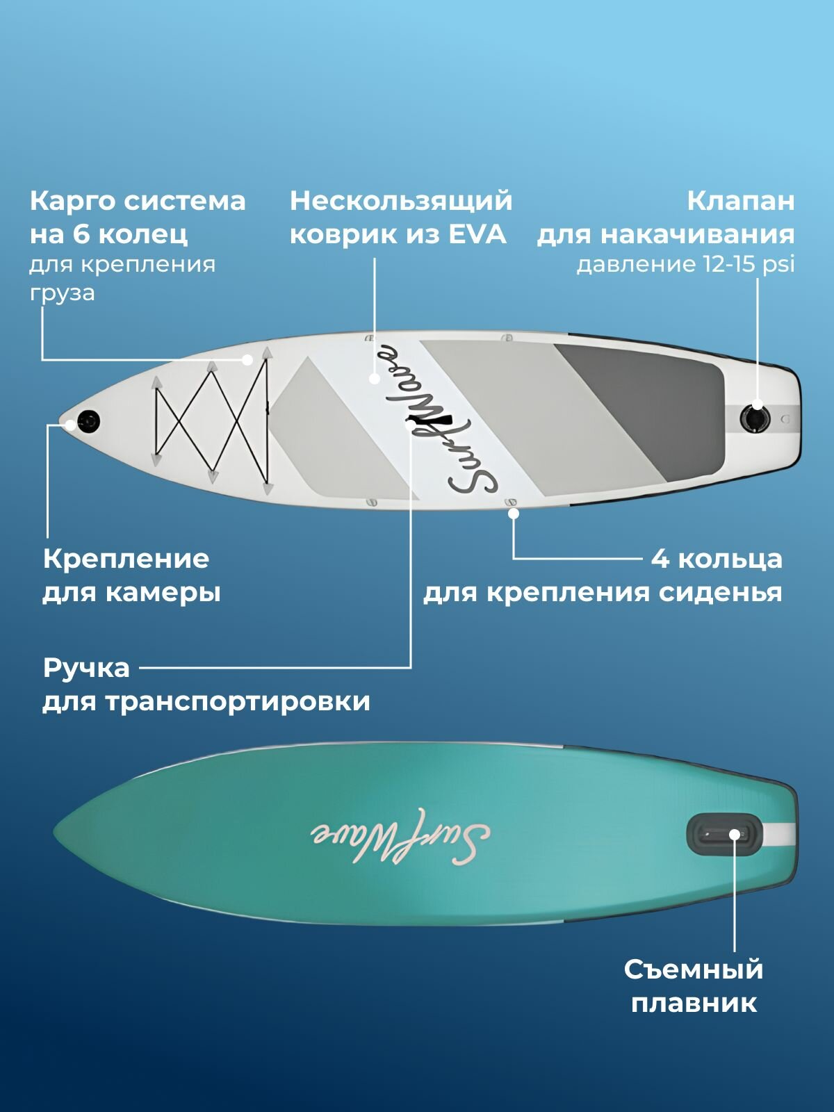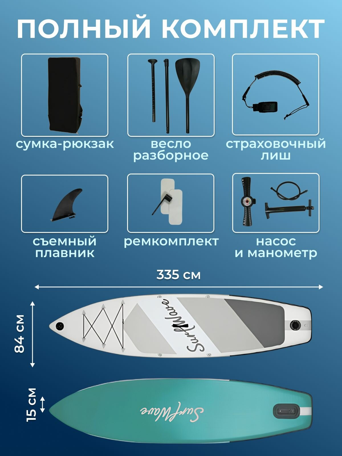 Сапборд, надувная SUP-доска Surf Wave 335х84 см, надувной двухслойный, Волны Серфинга, серый, бирюзовый, полный комплект: сравнение цен, характеристики, фото, актуальное наличие и цены.
