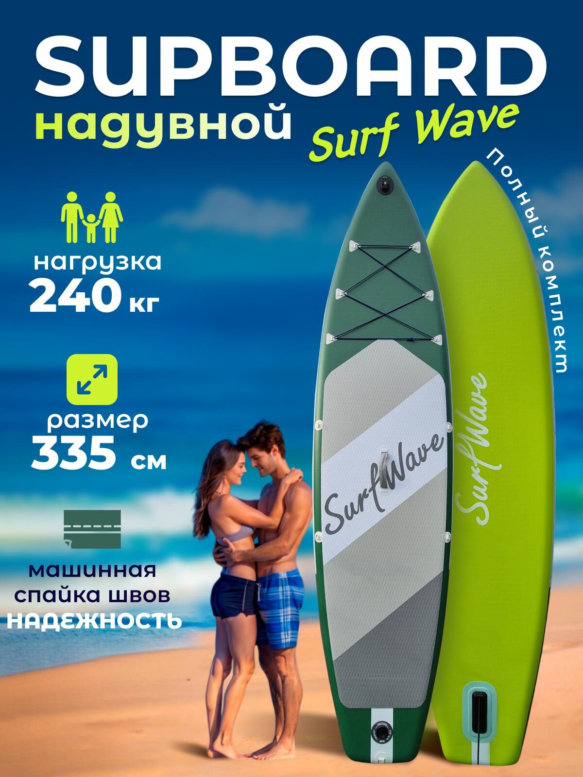 Сапборд, надувная SUP-доска Surf Wave 335х84 см, надувной двухслойный, Волны Серфинга, зеленый-салатовый, полный комплект: сравнение цен, характеристики, фото, актуальное наличие и цены.