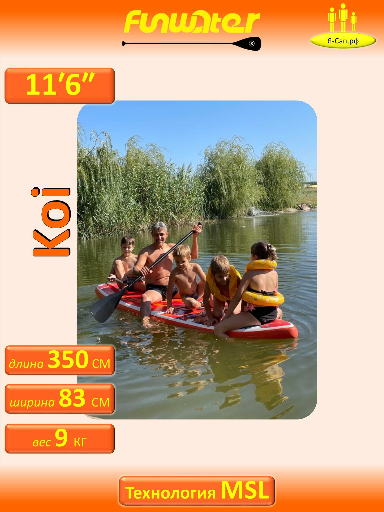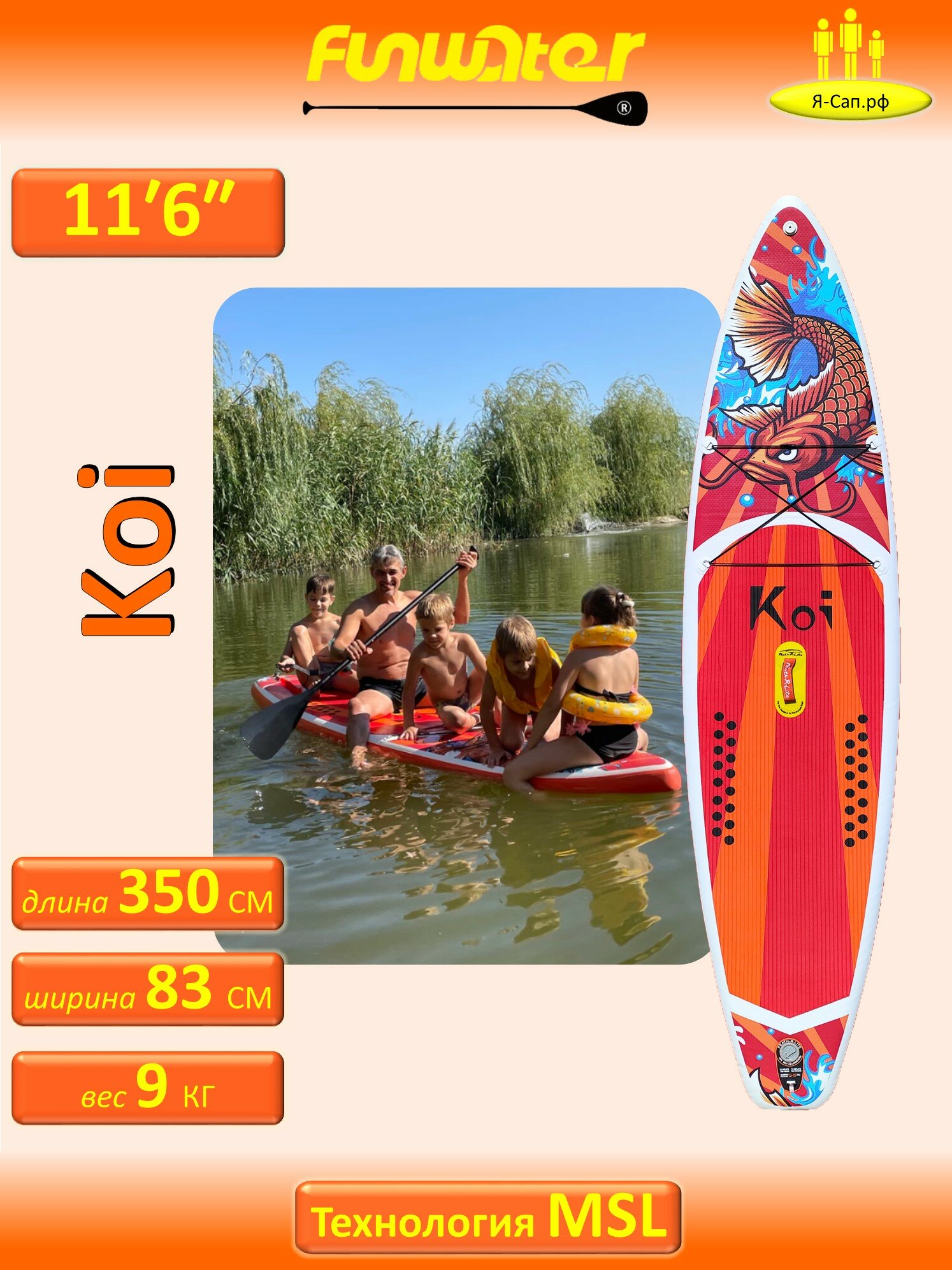 Купить Сапборд надувной, сап борд, sup board, FunWаtеr Коi, Кои 350 см 200 кг с доставкой по всей России.