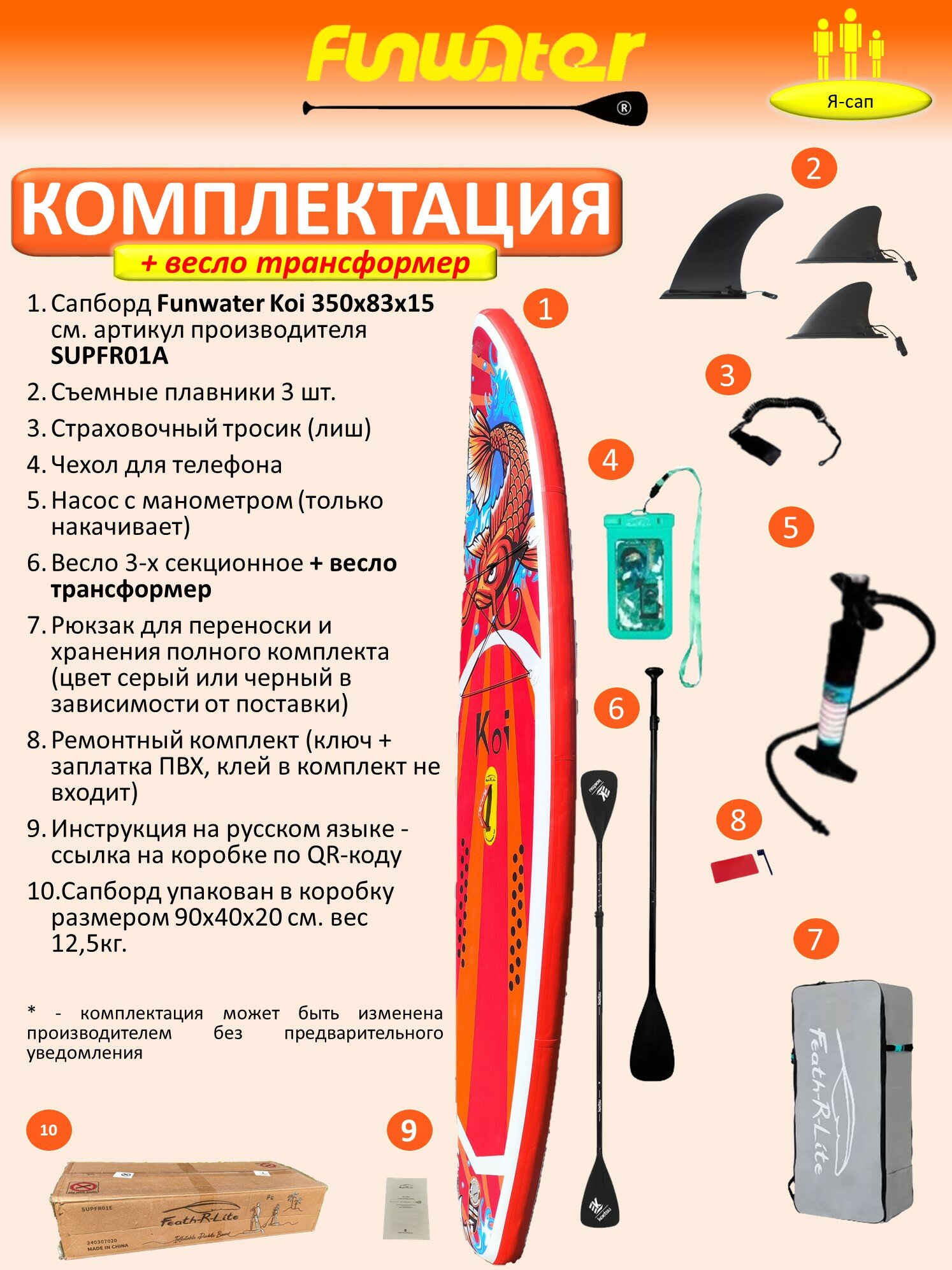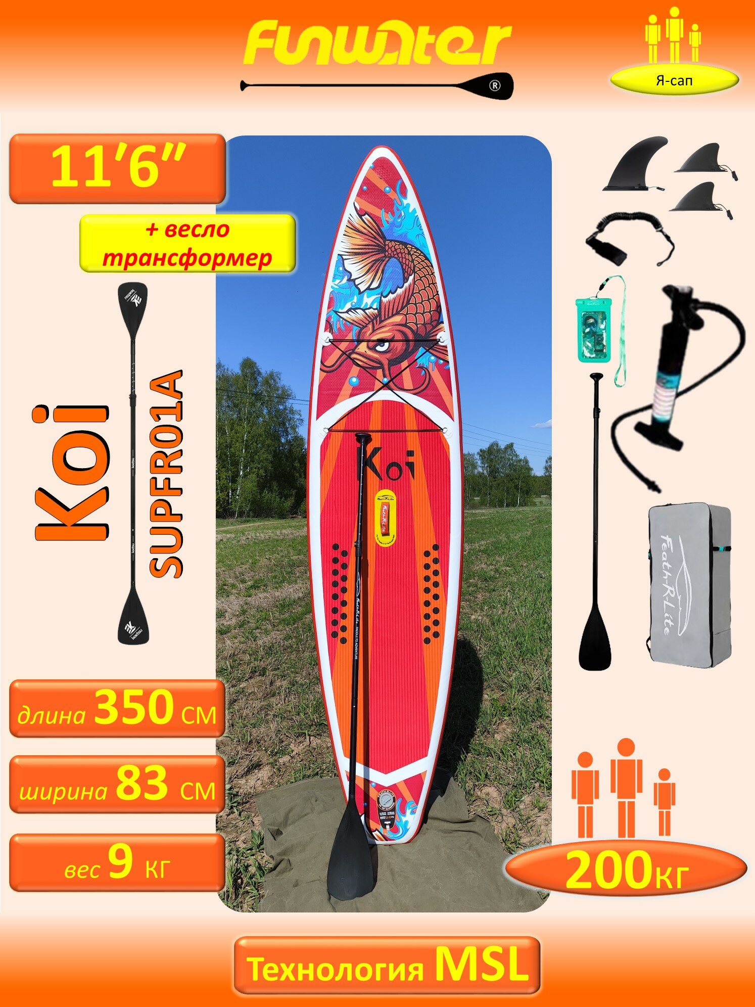 Купить Сапборд надувной, сап борд, sup board, FunWаtеr Коi, Кои 350 см 200 кг+ весло двухлопастное с доставкой по всей России.