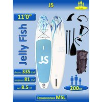 Сапборд надувной, доска для SUP-серфинга JS Jelly Fish 11′0" Артикул производителя JF335 полный комплект GQ Jelly Fish / JS Jelly Fish / Габариты сапборда: 335x81x15 см. / 11′0"x31"x6"; Рекомендуемая нагрузка райдера – 150 кг; Максимальная равномерная нагрузка – 200 кг; Давление: 12–15 psi; Вес изделия: 9,79 килограмма; Вес упаковки: 12,52 килограмма;