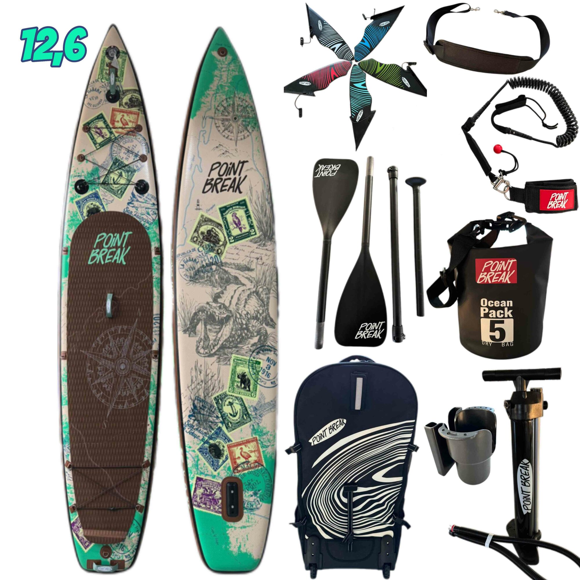 Размеры сапдоски Point Break 12.6 CRAFT — 384 сантиметра в длину и 81 в ширину. Толщина доски — 15 сантиметров. САПборд очень быстро развивает скорость и легко скользит по волнам, поэтому он отлично подойдет для заплывов.