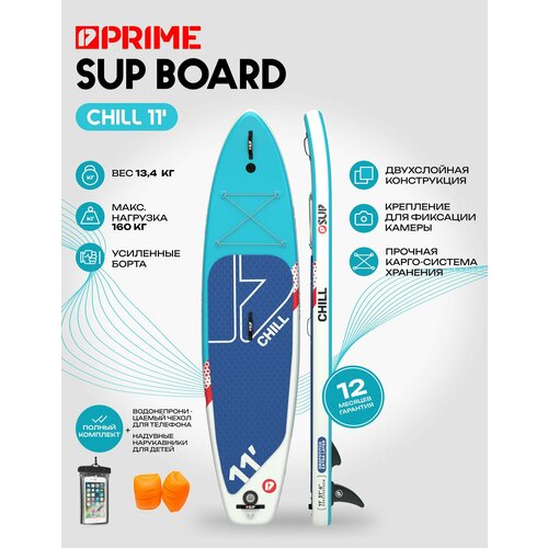 Надувная доска бренда PRIME CHILL 11' - это идеальное решение для всех ваших приключений на воде. Сапборд изготовлен из двухслойного ПВХ, что делает его прочным и долговечным. Модель оснащена универсальными клапанами, что позволяет быстро и легко надуть ее, а затем сдуть и сложить для хранения или транспортировки. Изделие с надежной точкой равновесия при сидении и стоянии является невероятно удобным для взрослых, но также достаточно простым для использования вместе с детьми. SUP доска достаточно широкая, чтобы вместить двух человек и ребенка, но достаточно компактная, чтобы поместиться в любом багажнике автомобиля. Сап отлично подходит для новичков и опытных серфингистов. Благодаря двухслойной конструкции, изделие отличается максимальной прочностью и грузоподъемностью.