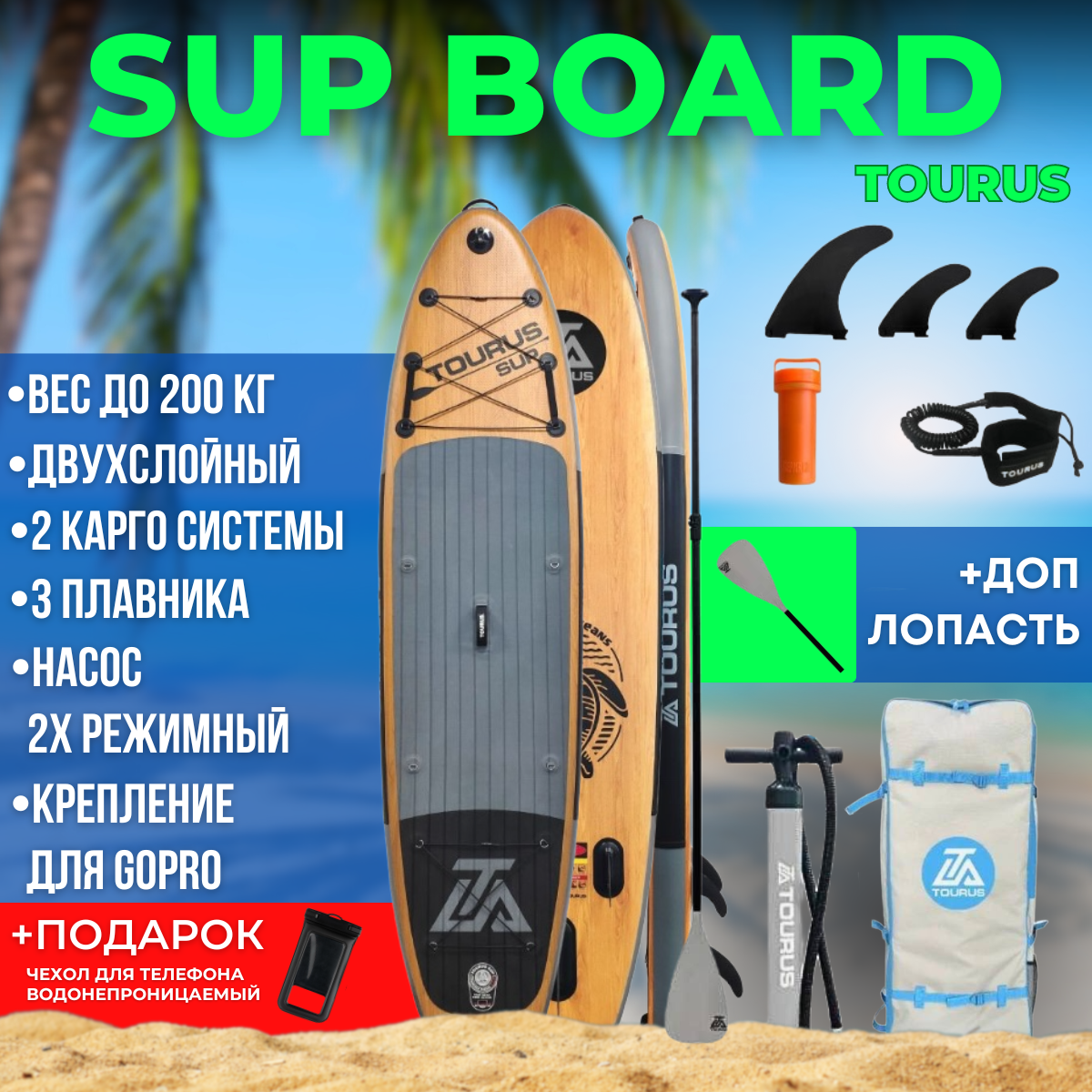 Премиальные проф сап доски в полном комплекте, двух слойные, фирма TOURUS。цвет коврика серый