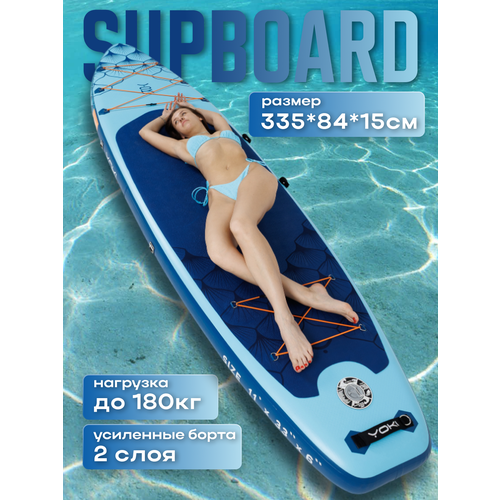 Купить Сапборд Yoki Kami 11′ (335х83х15 см), двухслойный надувной SUP, синий, максимальная нагрузка 180 кг с доставкой по всей России.