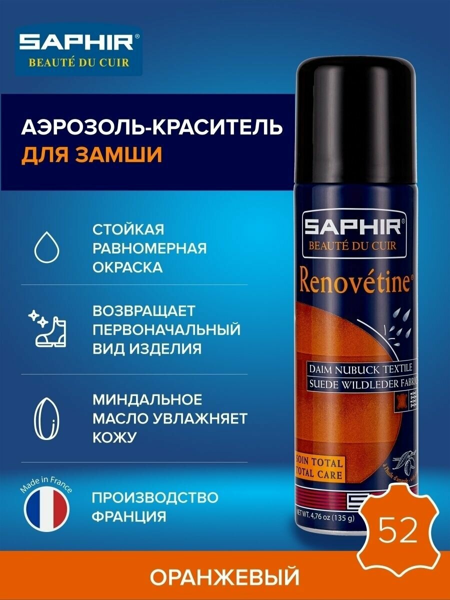 Купить Аэрозоль-краситель для замши Saphir Renovetine 200 мл, цвет 52 оранжевый с доставкой по всей России. Аэрозоль-краситель для замши Saphir Renovetine 200 мл, цвет 52 оранжевый: сравнение цен, характеристики, фото, актуальное наличие и цены.
