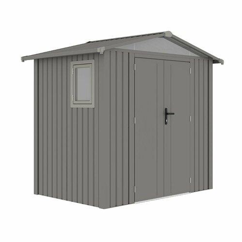 Каркасная система придает максимальную жесткость Панели из горячеоцинкованной стали толщиной 0,4 мм Каркас из профиля горячеоцинкованной стали с толщиной стенки 0,5-1,2 мм Система быстрого отвода дождевой воды Окно на боковой стенке открывается Оконный проем под крышей Распашные двери, с возможностью запирания на замок (в комплект не входит)