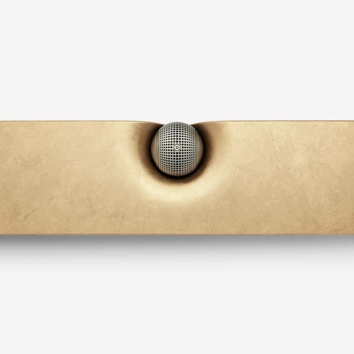 Устройство можно установить как на стене, так и перед телевизором. Саундбар визуально разделен на три части, на одной из которых находится логотип Devialet, а на другой - сенсорные кнопки управления.