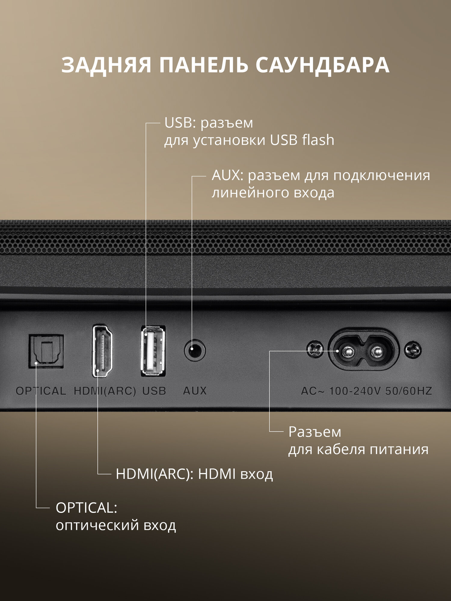 Саундбар SVEN SB-2055 представляет собой мощное решение, объединяющее различные функции и технологии для максимального комфорта и качества звука. Будь то просмотр фильма на телевизоре или прослушивание музыки с планшета, эта акустическая система обеспечит незабываемые впечатления. SB-2055 уникален благодаря возможности легкого настенного крепления. Это не только экономит место в комнате, но и придаёт интерьеру современный вид. Для удобного использования предусмотрены различные способы управления: дистанционный пульт и простая панель на боковой панели устройства. Благодаря этому изменение настроек или переключение между источниками звука становится максимально простым. Еще одной особенностью является передача сигнала по Bluetooth. Теперь ваша музыка всегда будет рядом — подключайтесь через блютуз колонку с телефона или ноутбука без лишних проводов. Кроме того, поддерживается воспроизведение музыки с USB flash, что открывает доступ к вашим любимым композициям напрямую. Для подключения устройств доступны такие интерфейсы, как цифровой HDMI (ARC) вход и оптический вход SPDIF (Optical), а также традиционный вход AUX для различных источников звука. Такое разнообразие портов делают этот саундбар универсальным решением, подходящим для любой ситуации — от настройки домашних кинотеатров до создания полноценного музыкального центра. Специально для пользователей телевизоров разработана возможность управления через ПДУ посредством функции HDMI CEC — теперь регулировка громкости и выбор режима через пульт станут проще и быстрее. Этот вариант прекрасно впишется как в домашнюю аудиосистему, так и станет отличным дополнением к ПК благодаря своей высокой производительности. Использовать его можно как колонки на ПК или акустику для компьютера, предоставляя мощный звук в играх, фильмах и другом контенте. Аудиосистема создана для завораживающего звучания в вашем доме.