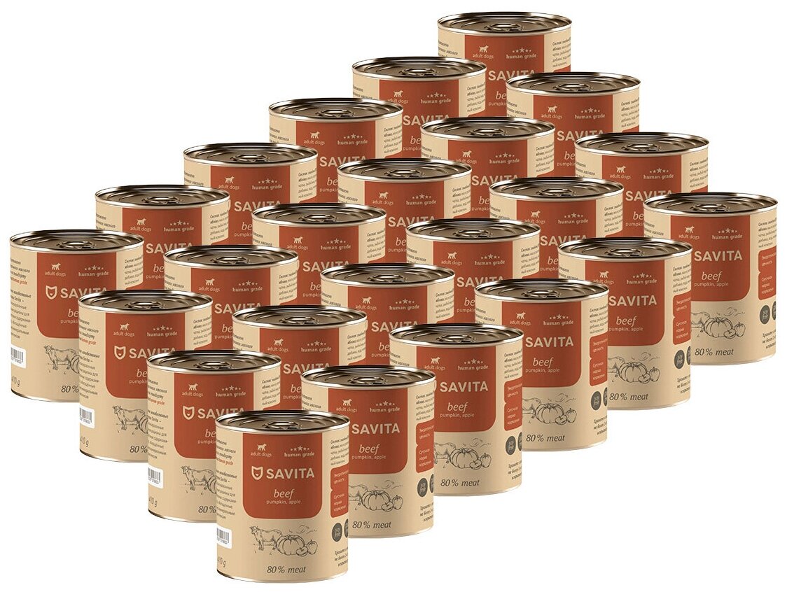 SAVITA консервы для собак «Говядина». Влажный корм, 24 шт по 410 гр: сравнение цен, характеристики, фото, актуальное наличие и цены.