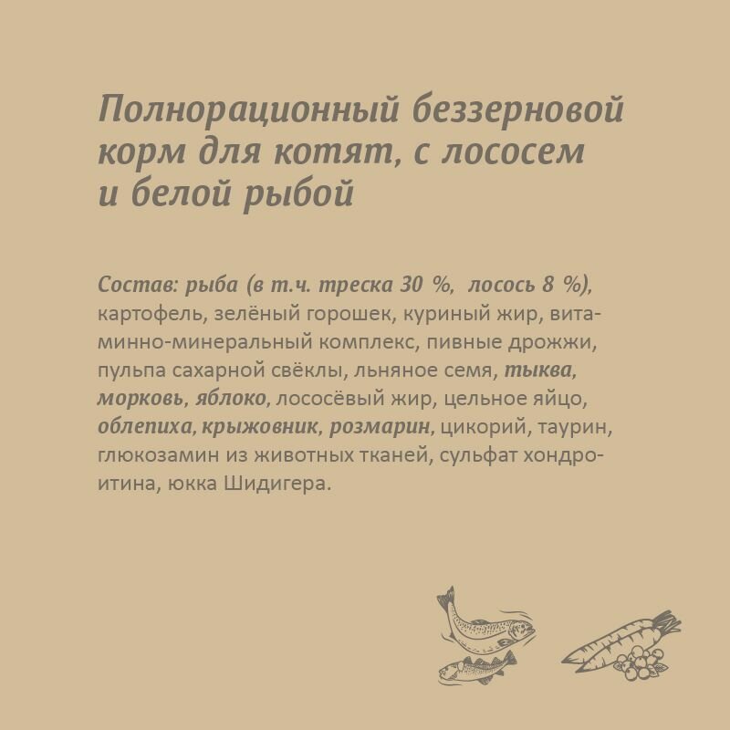 Состав: рыба (в т. ч. треска 30 %, лосось 8 %),