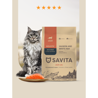 - SAVITA Беззерновой сухой корм для кошек с лососем и белой рыбой, GRAIN FREE ADULT, Salmon & White Fish