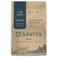 - SAVITA Беззерновой сухой корм для котят с лососем и белой рыбой, GRAIN FREE KITTEN, Salmon & White Fish