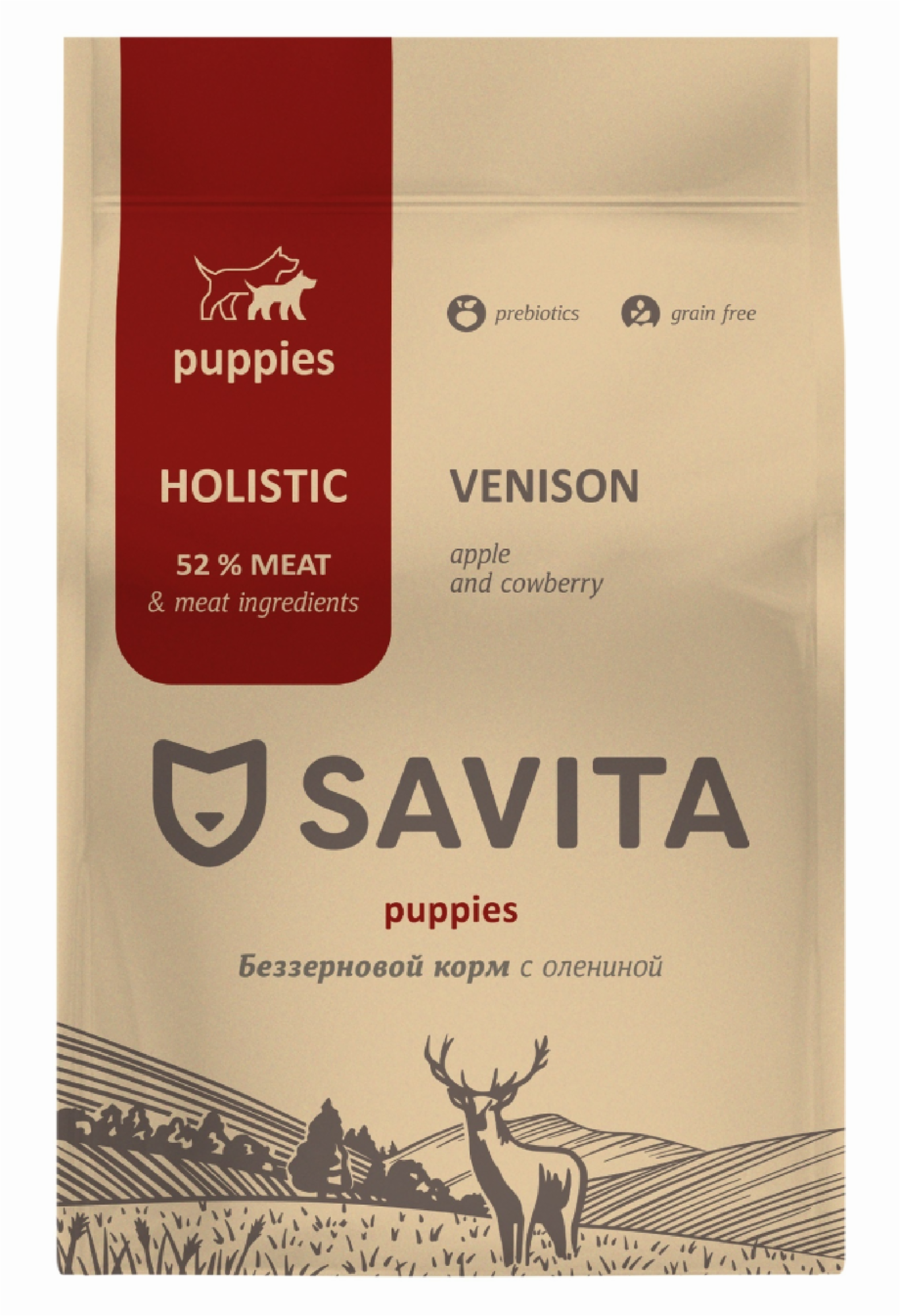 Корма Savita класса холистик содержат высокий процент мясных ингредиентов, необходимых витаминов и минералов, без добавления зерновых культур в составе. Надолго обеспечивают щенка необходимой энергией для правильного роста и развития. Каждый ингредиент тщательно подобран в соответствии с природными потребностями питомца и является важным компонентом в рецептуре корма, минимизируя риск возникновения аллергических реакций.