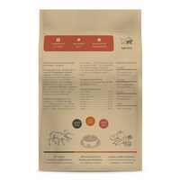 Мясо (в т. ч. теленка 28%, мясо оленя 8%) , картофель, зеленый горошек, куриный жир, натуральная вкусовая добавка из куриной печени, витаминно-минеральный премикс, пивные дрожжи, пульпа сахарной свеклы, льняное семя, лососевый жир, цельное яйцо, ламинария , брусника , розмарин, цикорий, хлорелла, глюкозамин из животных тканей, сульфат хондроитина, юкка ШидигераАналитический составсырой белок 30%, сырой жир 16%, сырая клетчатка 2,5%, сырая зола 7,5%, кальций 1,2%, фосфор 0,9%, натрий 0,35%. Калорийность 414 кКал