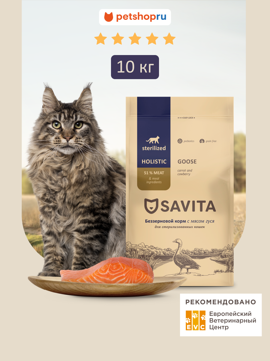 SAVITA Беззерновой сухой корм для стерилизованных кошек с мясом гуся, GRAIN FREE STERILISED, Goose, 10 кг: сравнение цен, характеристики, фото, актуальное наличие и цены.