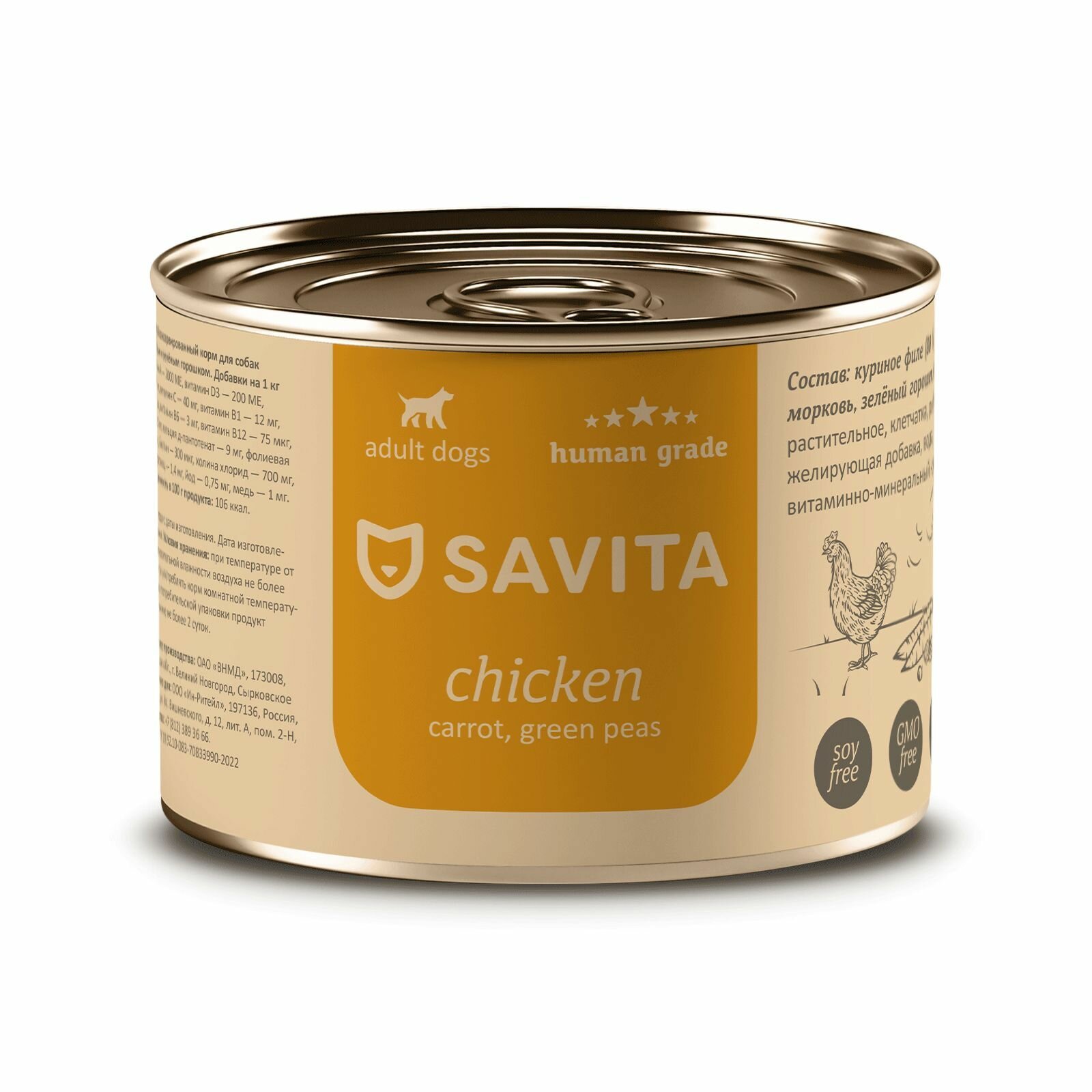 SAVITA консервы для собак «Курица с морковью и зеленым горошком». Влажный корм, 24шт по 240гр: сравнение цен, характеристики, фото, актуальное наличие и цены.