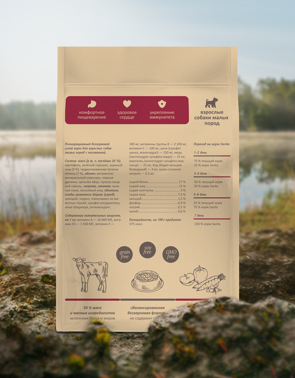 Беззерновой сухой корм Savita для собак малых пород с телятиной, GRAIN FREE ADULT MINI, Veal - с уважением к дикой природе Вашего питомца