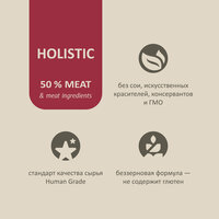 корма изготовлены из натурального сырья по стандарту качества human grade, не содержат ГМО, сои, ароматизаторов, искусственных консервантов и красителей;