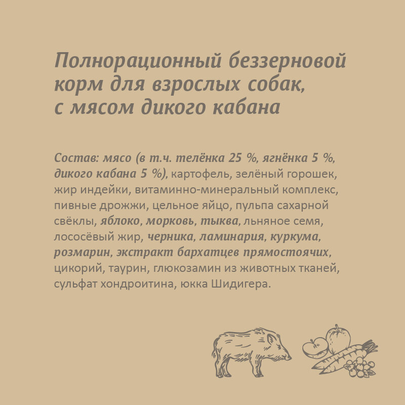 Корм сухой для собак, с мясом дикого кабана, 10 кг Польза природных ингредиентов и многолетний опыт, объединённые с эффективностью современных технологий Полнорационные и сбалансированные корма Savita класса холистик содержат высокий процент мясных ингредиентов, необходимых витаминов и минералов, без добавления зерновых культур в составе. Надолго обеспечивают собаку необходимой энергией на весь день. Каждый ингредиент тщательно подобран в соответствии с природными потребностями питомца и является важным компонентом в рецептуре корма, минимизируя риск возникновения аллергических реакций.