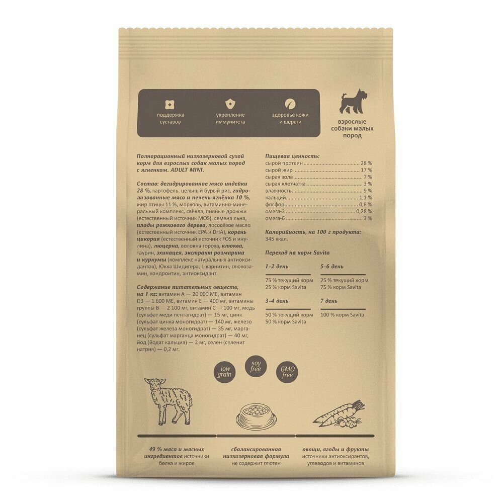 SAVITA сухой корм для взрослых собак малых пород с ягненком и бурым рисом,1.5кг: сравнение цен, характеристики, фото, актуальное наличие и цены.