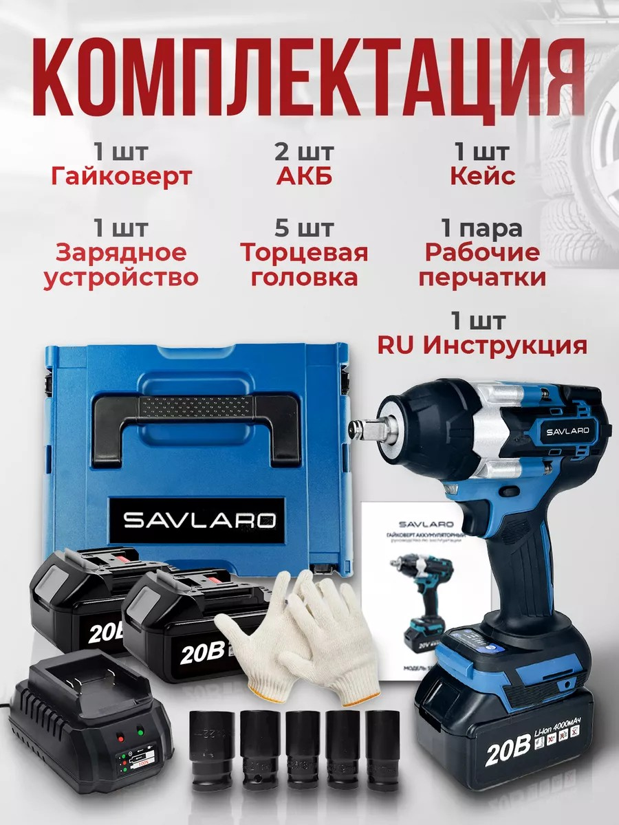 Купить Savlaro Гайковерт ударный, аккумуляторный, бесщеточный, профессиональный 1000 Нм с доставкой по всей России.