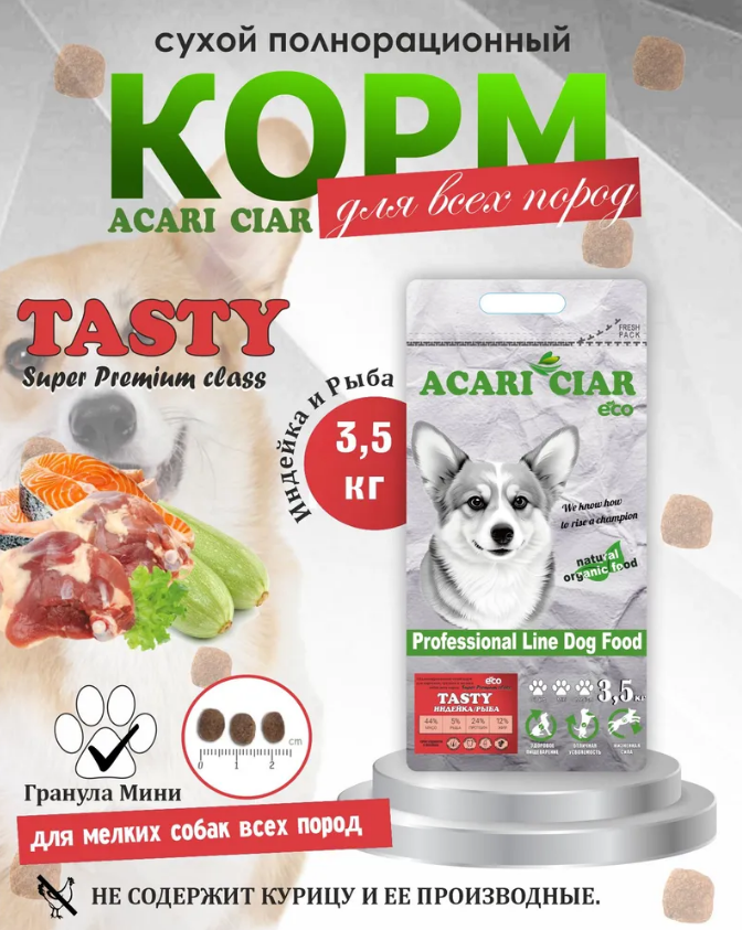 Купить Сбалансированный сухой корм супер-премиум класса с индейкой Acari Ciar Tasty 3,5 кг (мини гранула ) с доставкой по всей России.