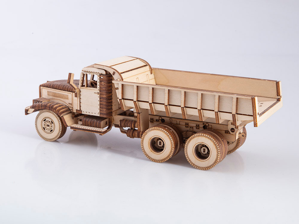 Сборная деревянная модель Baumi КРАЗ-256Б1 отличный способ развить конструкторское мышление и узнать о конструкции узнаваемого советского тяжелого самосвала.