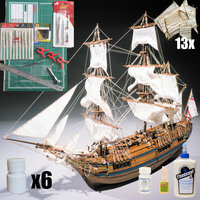 Купить Сборная деревянная модель корабля фирмы Mantua (Италия), HMS Bounty, 380 часов, М.1:60, подарочный набор с парусами, инструментами и красками, лаком и клеем с доставкой по всей России.