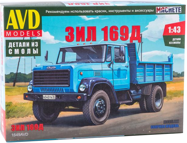 В коробке - набор пластиковых и смоляных деталей, лист декалей для постройки модели советского грузовика ЗИЛ-169Д в масштабе 1/43.
