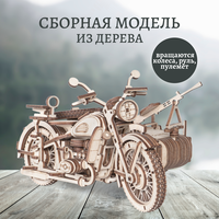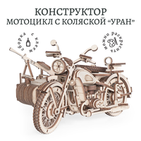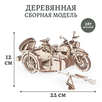 Сборная деревянная модель "Мотоцикл с коляской уран" от Lemmo — собери легенду своими руками!