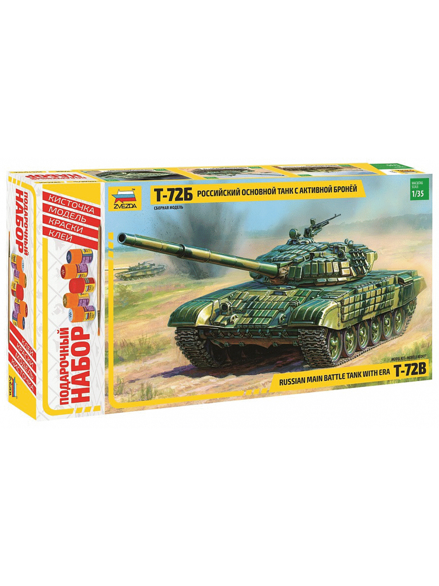 Купить Сборная модель Zvezda 3551П Российский основной танк с активной броней Т-72Б, подарочный набор, масштаб 1:35 с доставкой по всей России. Сборная модель Zvezda 3551П Российский основной танк с активной броней Т-72Б, подарочный набор, масштаб 1:35: сравнение цен, характеристики, фото, актуальное наличие и цены.