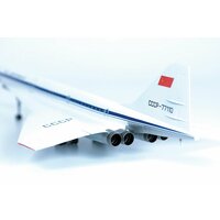 Советский сверхзвуковой авиалайнер Ту-144 был создан в КБ Туполева и стал первым в мире самолетом подобного класса. Прототип авиалайнера впервые поднялся в воздух 31 декабря 1968 года. Коммерческая эксплуатация самолета началась в 1975 году по маршруту Москва – Алма-Ата. Использование сверхзвуковых авиалайнеров на пассажирских рейсах завершилось в 1978 году, впоследствии они использовались в качестве летающих лабораторий. На борту самолета в комфортных условиях могли разместиться до 150 пассажиров. Крейсерская скорость полета - 2 300 км/ч, высота – 16-18 км. Ту-144 с бортовым номером СССР-77110 осуществлял регулярные пассажирские перевозки в 1977-78 годах, был участником XXXII международного авиасалона в Ле-Бурже в 1977 году, получив выставочный номер 345. В 1984 году, после завершения эксплуатации самолет был передан в Ульяновский музей гражданской авиации, где находится и поныне.
