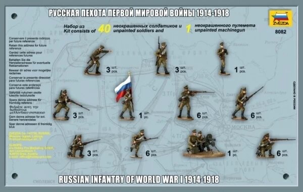Купить Сборные миниатюры Русская пехота Первой мировой войны 1914-1918 г. (1/72) Звезда 8082 с доставкой по всей России. Сборные миниатюры Русская пехота Первой мировой войны 1914-1918 г. (1/72) Звезда 8082: сравнение цен, характеристики, фото, актуальное наличие и цены.