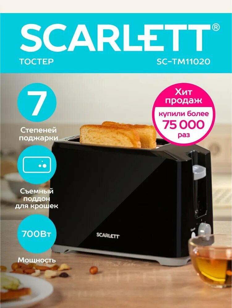 Купить Scarlett Тостер SC-TM11020 700 Вт тостов — 2, черный с доставкой по всей России.