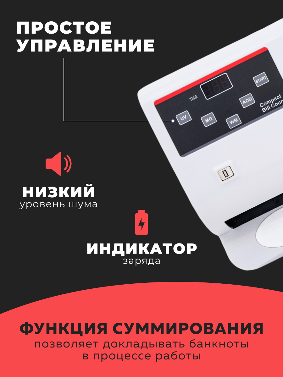 Купить Счетчик банкнот «Genery V10», портативный, мультивалютный, 600 купюр/мин, дисплей с доставкой по всей России.