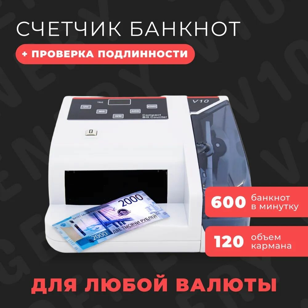 Счетчик банкнот, купюр, денег Genery V10 мультивалютный, портативный / Детектор подлинности банкнот автоматический / Счетная машинка для проверки денег: сравнение цен, характеристики, фото, актуальное наличие и цены.