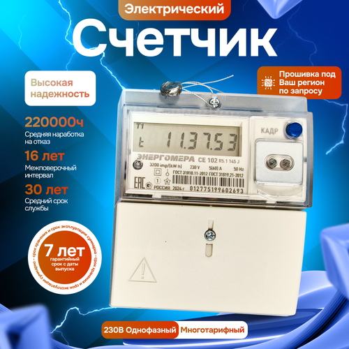 Счетчик электроэнергии однофазный многотарифный Энергомера CE102 R5.1 145 J 1ф 5 (60) А (прошивка под Ваш регион по запросу): сравнение цен, характеристики, фото, актуальное наличие и цены.