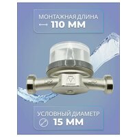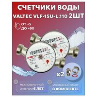 Счетчик воды VALTEC универсальный Ду 15 (1/2") 110 мм | Межповерочный интервал 6 лет | С патрубками в комплекте