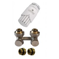 Комплект Schlosser Standard включает в себя: узел нижнего подключения прямой, никелированный, термостатическую головку Diamant, 2 Ниппеля 1/2x3/4. Рабочая температура 120°С. Номинальное давление 1 МРа. Теплоноситель – вода. Резьбовое соединение - 3/4". Подключение радиатора – 3/4". Межосевое расстояние – 50 мм. Резьбовое соединение термостатической головки – М30х1,5, цвет - никелированный.