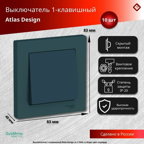 Schneider Electric AtlasDesign Выключатель 1-клавишный Изумруд сх.1, 10АХ, в сборе (комплект 10шт): сравнение цен, характеристики, фото, актуальное наличие и цены.