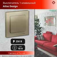 Купить Schneider Electric AtlasDesign Выключатель одноклавишный Шампань сх.1, 10АХ, в сборе (комплект 5шт) с доставкой по всей России.