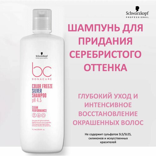 Купить Schwarzkopf Professional Bonacure Clean Performance Шампунь для придания серебристого оттенка волосам Color Freeze Silver Shampoo 1000мл с доставкой по всей России.
