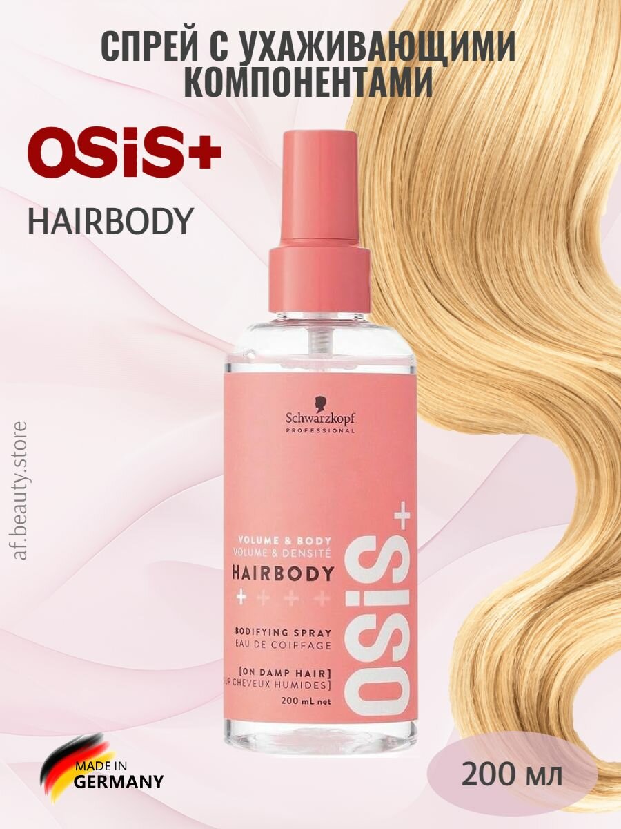 Объем упаковки составляет 200 мл, что делает его удобным для использования как дома, так и в дороге. Schwarzkopf OSIS+ Hairbody не содержит агрессивных химических веществ, что позволяет использовать его даже на чувствительных волосах.