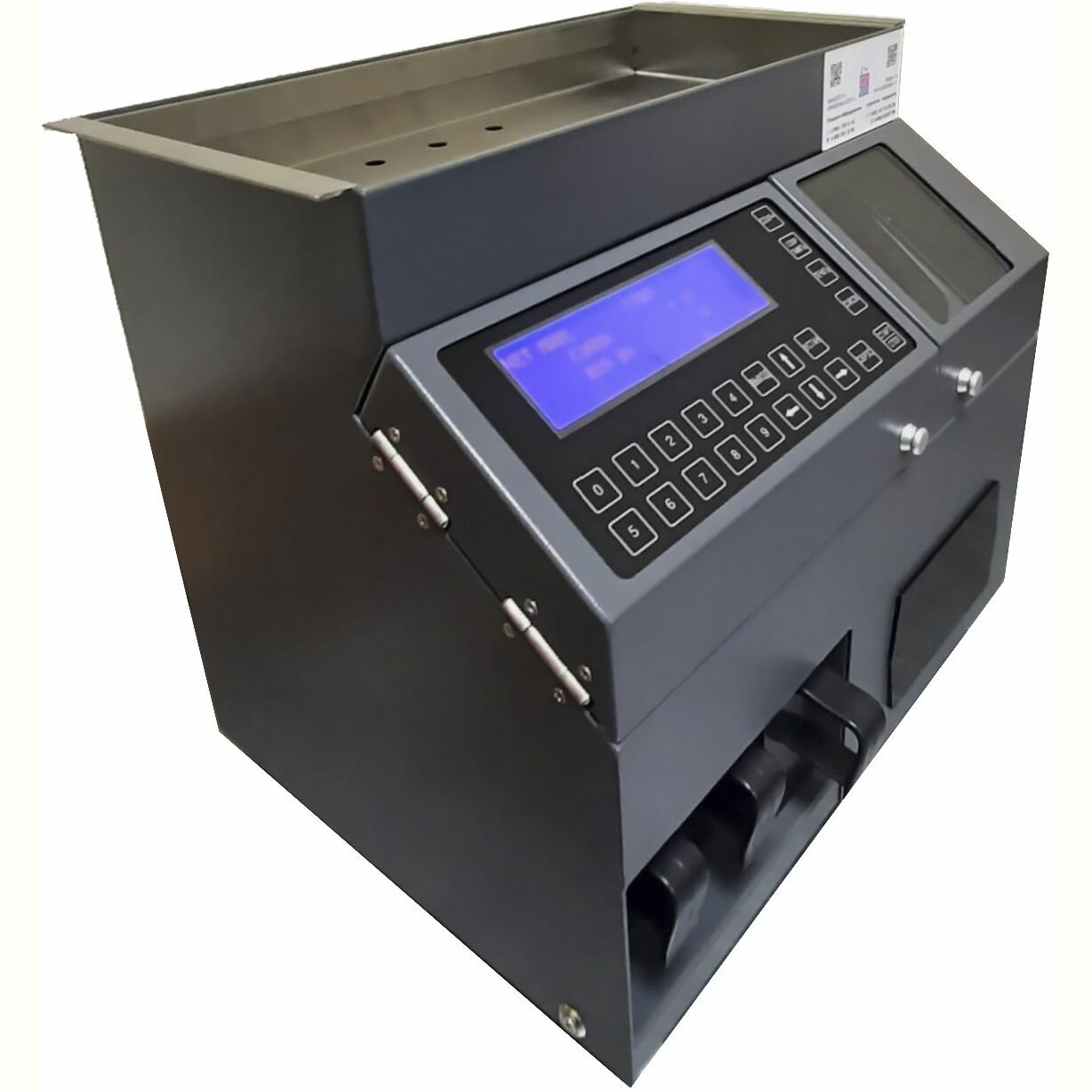 Мощный счётчик сортировщик российских монет Mbox CS-211S. Подходит тем, кто обрабатывает большие объёмы наличности. Модель оснащена современными точными сенсорами для определения состава металла по пяти параметрам. При выявлении несоответствия подделки, жетоны и монеты других государств будут отбракованы.