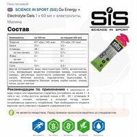 | Дополнительная информация | Один гель (60 г) за 5-15 мин до тренировки и далее каждые 30-45 мин. Всегда поддерживайте уровень жидкости в организме. При приеме необходимо учитывать индивидуальную подготовленность, массу тела и интенсивность нагрузок. ; Высокое содержание углеводов; Улучшает производительность; Не требует дополнительной воды или жидкости; Легкая, компактная, удобная для переноски упаковка |