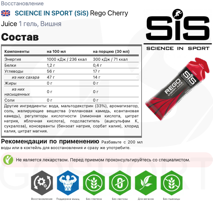 SCIENCE IN SPORT (SiS) Rego Cherry Juice 9 x 30 мл, Вишня: сравнение цен, характеристики, фото, актуальное наличие и цены.
